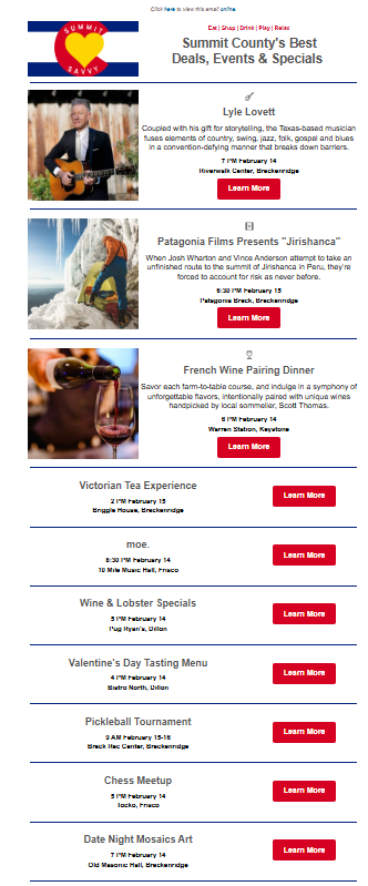 - Reach: Over 5K (and growing fast) Summit County residents, second homeowners and regular visitors.